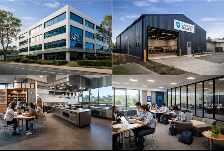 A community college needed to relocate after its existing commercial premises were being repurposed by the landlord. The alternative site was a 700sqm industrial warehouse shell with minimal existing improvements. ClearCode Consulting guided the approvals and delivery process, navigating the Class 9B pathway and helping transform the building into a fully functioning education facility.